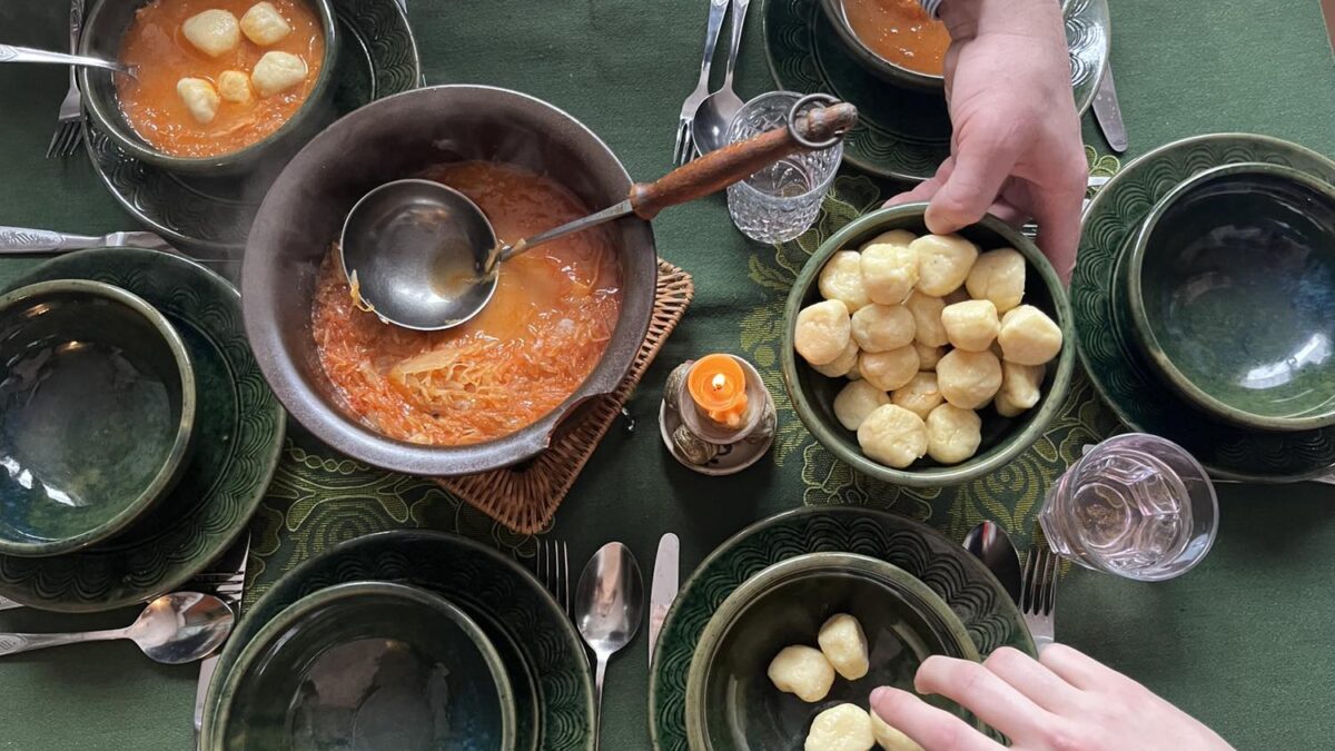 Alig várom, hogy gőzölögve asztalra kerüljön az est sztárvendége, a híres narancssárga, ipoly-menti hagyomány mentén elkészülő káposztaleves.
